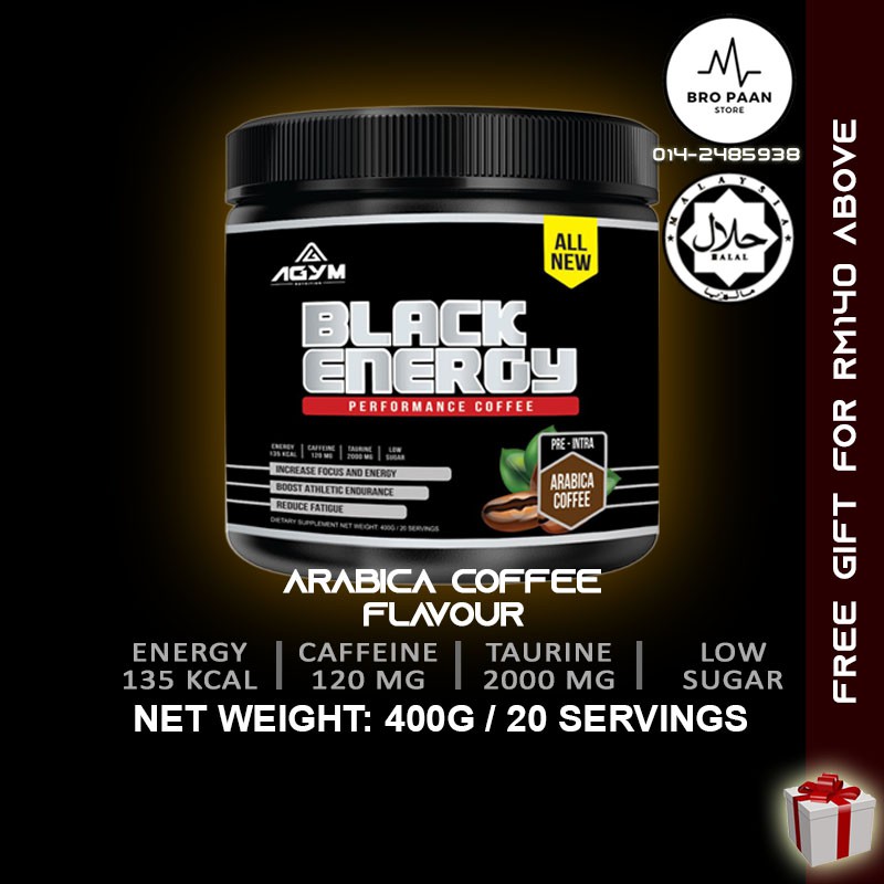 Agym Nutrition Black Energy 400g 20 Servings Arabica Coffee Pre Workout Stamina Booster Halal Kkm Approved Shopee Malaysia